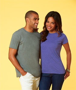preshrunk 50% polyester/25% cotton/25% rayon jersey • 4.3-oz. • 32 singles for extreme softness • 1x1 rib-knit set-in collar • satin label • Sizes: S-2XL