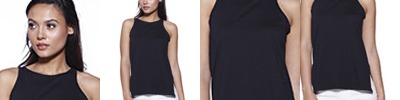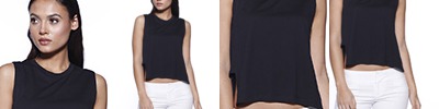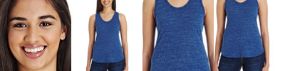4.3 oz., 52% cotton 48% polyester, 30 singles; Ultra-fine cotton blend; Fashion fit; Side seams; Scoop neck 1x1 rib sleeveless cuffs; Tear-away label; Made in a w.r.a.p. certified factory;