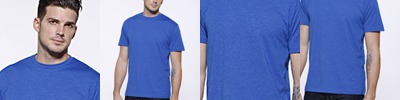 4.3 oz., 50% polyester 25% cotton 25% rayon ; 30 singles ; Side seams; retail fit; Tear-away label; Classic fit; Extra soft cotton blend; Made in a W.R.A.P. certified factory;