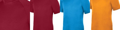 100% polyester wicking knit; Wicks moisture away from the body ; Updated fit has longer length and bigger chest for added comfort; Pad print label ; Self-fabric crew neck collar ; Raglan sleeves provide greater range of motion ; color secure technology helps prevent dye migration;