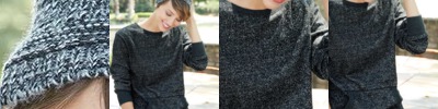 - Wide neckline and ribbed cuffs and waistband