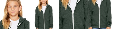 7 oz., 52% airlume combed and ring spun cotton, 48% polyester fleece 32 singles; Sideseamed; Retail fit; Youth sizing; Full-zip closure with white taping; Ribbed cuffs & waistband; White cord drawstring; Tear away label; BELLA+CANVAS uses sustainable manufacturing processes with Blue Sign certified dyes, efficient dye houses that adhere to the state of California’s EPA regulations around waste water treatment and usage, and cutting facilities in Los Angeles that run on partial solar power with comprehensive recycling programs for paper waste and fabric scraps.;