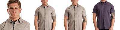 - Three-button placket with bottom boxstitched reinforcement