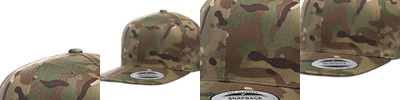 98% cotton / 2% P.U. spandex; Official licensed MULTICAM® pattern; Pattern is the proven multi-environment concealment solution; Black plastic snap closure; Hard buckram; Black undervisor; OSFA;