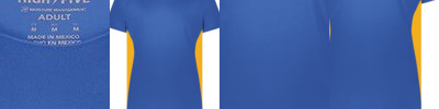 - Contrast heat-transfer logo on back neck