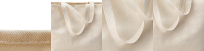 - 100% cotton twill Cotton web handles reinforced with stress-point stitching Dimensions: 15.5"h x 13"w x 7"dNote: Bags not intended for use by children 12 and under. Includes a California Prop 65 and social responsibility hangtag.