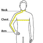 | Chest | 32-34 | 35-37 | 38-40 | 41-43 | 44-46 | 47-49 | 50-53 | 54-57 |