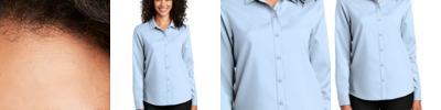 Comfort and performance meet classic corporate style. Odor-fighting, wrinkle-resistant and moisture-wicking, these looks have just the right amount of stretch to keep up with a busy day. 3.7-ounce, 93/7 poly/spandex Odor-fighting Wrinkle-resistant Moisture-wicking Open collar and neckline Longer tunic length Pearlized buttons Rounded adjustable cuffs Curved hem