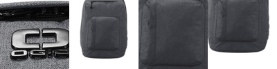 600D poly canvas (solid); 600D heather poly (heather) Main compartment with padded laptop panel Interior organization pockets Front zippered pocket Exterior side pocket Padded air mesh shoulder straps Luggage trolley pass through on back Laptop sleeve dimensions: 11.5'h x 12'w x 1'd; fits most 15' laptops Dimensions: 17.75'h x 12.25'w x 5.5'd; Approx. 1,196 cubic inches Note: Bags not intended for use by children 12 and under.