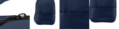 840D poly two-tone PU Spacious main compartment with organization panel Easy-access padded laptop/compartment with fleece-lined, brushed tricot tablet sleeve Interior organization pockets Dual side mesh beverage pockets Ergonomic adjustable air mesh shoulder straps Reflective piping on front, handle and shoulder straps for increased visibility Integrated webbing luggage trolley strap on back Dimensions: 19'h x 10.5'w (top) x 13.5'w (bottom) x 9.5'd Capacity: 1,464 cu. in./24 L Weight: 1 lb./1.2 kgs Laptop sleeve: 15'h x 11'w; fits most 17' laptops Note: Bags not intended for use by children 12 and under.