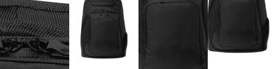 1,680D ballistic polyester (solid); 300D two-tone poly/1,680D polyester (heather) Spacious main compartment Dedicated zippered laptop compartment Front zippered pocket with extensive organization panel Tricot-lined valuables pocket Air mesh shoulder straps Side mesh pocket Tech nylon zipper pulls Padded mesh luggage trolley pass through on back Laptop sleeve dimensions: 17'h x 13'w Dimensions: 18.75'h x 14.5'w x 8.75'd; Approx. 2,379 cubic inches Note: Bags not intended for use by children 12 and under.