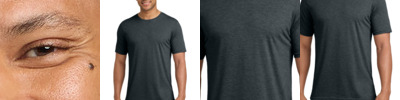 Primed for 24/7 comfort, a proprietary finish gives our tri-blend tee unbelievable softness at a great value. 4.5-ounce, 50/37/13 poly/cotton/rayon 1x1 rib knit neck Shoulder to shoulder taping Tear-away label Please note: This product is transitioning from white to black tear-away labels. Your order may contain a combination of both colored labels.