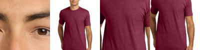 Primed for 24/7 comfort, a proprietary finish gives our tri-blend tee unbelievable softness at a great value. 4.5-ounce, 50/37/13 poly/cotton/rayon 1x1 rib knit neck Shoulder to shoulder taping Side seamed with a contoured body for a feminine fit Tear-away label Please note: This product is transitioning from white to black tear-away labels. Your order may contain a combination of both colored labels.