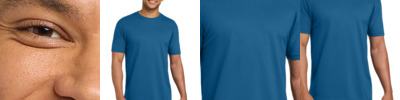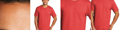 4.3-ounce, 60/40 combed ring spun cotton/poly sueded jersey, 32 singles 1x1 rib knit neck Shoulder to shoulder taping Tear-away label Side seamed Please note: This product is transitioning from satin labels to tear-away labels. Your order may contain a combination of both labels.