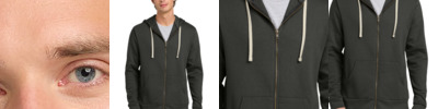 7.4-ounce, 80/20 cotton/poly 100% cotton face Front pockets 1x1 rib knit cuffs Twill back neck tape Stitched eyelets Jersey-lined hood Exposed antique brass YKK zipper Natural flat drawcord Locker patch for printable label Tear-away label