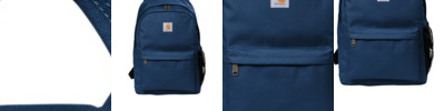 This no-nonsense pack is built for everyday hauling. Made of canvas with a water-shedding coating, it can easily handle any work or school commute. 500D polyester Rain Defender ® durable water repellent (DWR) Large main compartment with 15' laptop sleeve Front zippered pocket with 2 mesh pockets and key fob Mesh side pocket Padded shoulder straps for comfort Carhartt label sewn on front Capacity: 21L Dimensions: 17.5'h x 12'w x 6'l Note: Bags not intended for use by children 12 and under.