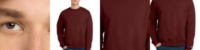 9-ounce, 50/50 U.S. grown cotton/poly 50/40/10 cotton/poly/black poly (Light Steel) 50/48/2 cotton/poly/black poly (Silver Grey) Double Dry technology wicks moisture 1x1 rib knit sleeve cuffs and hem Embroidered Champion 'C' logo at left cuff Woven back neck label