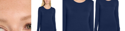 96/4 rayon/spandex Round neckline Wink heat transfer logo at hem Trim fit to easily layer under scrub tops without extra bulk