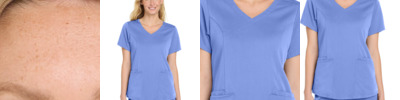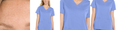 78/20/2 poly/rayon/spandex Wrap top neckline Front princess seams Shoulder badge loop Top-loading front pockets with interior pockets and pen slot Side vents Wink heat transfer logo at left pocket Modern fit