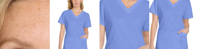 78/20/2 poly/rayon/spandex V-neckline Shoulder badge loop Left chest pocket with pen slot Top-loading front pockets with interior right pocket Side vents Wink heat transfer logo at left hem Modern fit