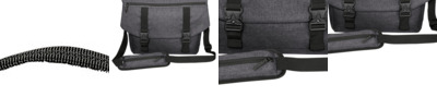 600D poly Interior zippered pocket on front flap for easy decoration access and interior organization Top handle for easy grab Large main compartment Deluxe organization panel Double metal buckle front flap closure Detachable, adjustable, padded shoulder strap with zippered pocket for quick access to small items Integrated luggage trolley pass through on back High-density O heat transfer Laptop sleeve: 9.44'h x 12.2'w; fits most 15' laptops Dimensions: 14'h x 15.74'w x 5.9'd Capacity: 1,098 cu. in./18 L Weight: 2.34 lbs./1.06 kg Note: Bags not intended for use by children 12 and under.