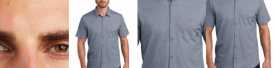 Extend your casual wardrobe with this OGIO knit shirt that has mechanical stretch. The heathered fabric has a subtle pinstripe effect that's evident in the inside collar, locker loop and at the side seam gussets. 4-ounce, 65/35 poly/cotton knit OGIO heat transfer label for tag-free comfort Open collar Sandwiched tonal buttons Left chest pocket with woven OGIO tab Back locker loop Slightly curved hem Shirttail hem can be worn untucked