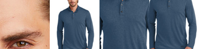 Extend your casual wardrobe with this OGIO knit shirt that has mechanical stretch. The heathered fabric has a subtle pinstripe effect that's evident in the inside collar, locker loop and at the side seam gussets. 4-ounce, 65/35 poly/cotton knit OGIO heat transfer label for tag-free comfort Open collar Sandwiched tonal buttons Left chest pocket with woven OGIO tab Back locker loop Cuffed sleeves Slightly curved hem Shirttail hem can be worn untucked
