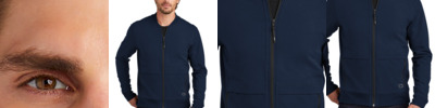 Stretch your layering options with this modern full-zip that was inspired by the classic bomber jacket. 8.5-ounce, 87/13 cotton/spandex knit Lightly brushed OGIO heat transfer label for tag-free comfort Center front reverse coil zipper with rubber OGIO pull Front flange across body Black reflective O heat transfer on front left hem Zip-through collar Front zippered pockets Rib knit cuffs Open hem