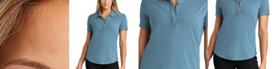 A polished look is easily achieved in this elevated style that combines professionalism with snag- and odor-resistance, plus moisture wicking performance. 5.6-ounce, 94/6 poly/spandex jersey Snag-resistant Stretch Moisture-wicking Odor-resistant Easy Care Self-fabric collar with collar stand Single-button keyhole neck Curved drop tail hem Tag-free label