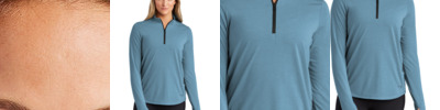 7.7-ounce, 89% recycled polyester/11% spandex interlock knit (solids) 7.7-ounce, 81% recycled polyester/8% polyester/11% spandex interlock knit (heathers) This product's carbon footprint has been measured and reduced through a combination of preferred materials and investing in carbon offset projects through the ClimeCo Certified Product ™ Program Snag-resistant Moisture-wicking UPF rating of 50+ Self-piped zipper placket Shoulder piecing detail Dyed-to-match, recycled, reverse coil zipper with silicone-tipped drawcord pull Self-turned cuffs Straight drop tail hem Side vents Tag-free label