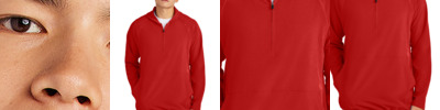 7.7-ounce, 89% recycled polyester/11% spandex interlock knit (solids) 7.7-ounce, 81% recycled polyester/8% polyester/11% spandex interlock knit (heathers) This product's carbon footprint has been measured and reduced through a combination of preferred materials and investing in carbon offset projects through the ClimeCo Certified Product Program Snag-resistant Moisture-wicking UPF rating of 50+ Forward shoulder Dyed-to-match, recycled, molded zipper with dyed-to-match rubber-tipped pull Angled front pockets with stitching detail Self-banded cuffs and hem Tag-free label