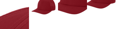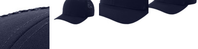 95/5 polyester/spandex Moisture-wicking sweatband Contrast mesh trim detail (Black/Black is tonal) Dyed-to-match low-profile hook and loop backstrap with D-ring closure