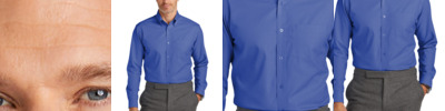 Elevate your business-casual vibe with a budget-friendly shirt that's polished and professional. The subtle two-color nailhead pattern adds a touch of refinement. 4-ounce, 60/40 cotton/recycled polyester Easy care Open collar Bust darts Dyed-to-match pearlized buttons Rounded adjustable barrel cuffs Rounded hem