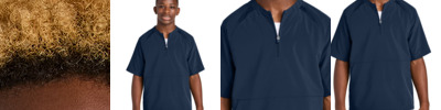 Knock it out of the park with this extra roomy, moisture-wicking short sleeve jacket. 3.5-ounce, 90/10 poly/spandex 100% poly tricot mesh inserts Moisture-wicking Stretch Self neck tape Locker loop Dyed-to-match zipper with contrast zipper pull Front side pockets Tag-free label