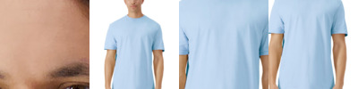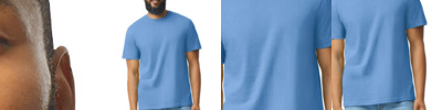 4.6-ounce, 60/40 ring spun cotton/polyester CVC blend Subtle heather texture on all colors except Pitch Black and White Recycled, high-performing black tear-away label Softstyle's high stitch density fabric offers a smoother printing surface Narrow width, rib collar Taped neck and shoulders Modern classic fit, seamless body Double-needle hem Rib cuffs