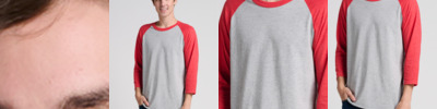 5.2-ounce, 50/50 combed ring spun cotton/polyester 60/40 cotton/polyester (Oxford/Fiery Red Heather, Oxford/Black Ink, Oxford/Indigo Heather) Made with sustainably sourced USA-grown cotton Moisture-wicking Contrast bound collar and 3/4-raglan sleeves Drop tail with serged hem Side seamed Tear-away label