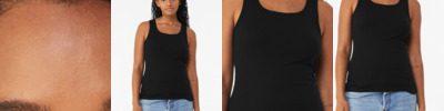 Stretch fit High neck Racerback 1x1 micro rib Side seamed Mid-length Tear-away label 5.4-ounce, 52/48 Airlume combed and ring spun cotton/polyester, 32 singles Athletic Heather: 90/10 Airlume combed and ring spun cotton/polyester