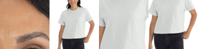 4.3-ounce, 100% combed ring spun cotton, 32 singles 1x1 rib knit crewneck collar Shoulder to shoulder taping Tear-away label Side seamed