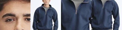 - Heather Navy and Heather Brown are 52/48 cotton/polyester