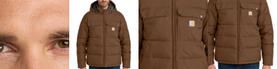 Insulated for warmth and engineered to combat wind and rain, these outerwear pieces are for cold-weather warriors who demand warmth, performance and style. 4.5-ounce, 100% nylon 100% polyester lining Blown-in insulation for extra warmth Rain Defender ® durable water repellent (DWR) Wind Fighter ® technology tames wind Carhartt label sewn on left chest Sherpa-lined fleece in upper body, taffeta hood lining Mock neck collar Adjustable hood with cord lock Hidden elastic at cuffs to help seal out wind Left chest pocket with hidden zipper Large interior utility pocket for extra storage Snap-button chest pockets Secure-zip lower hand pockets Adjustable drop tail hem for a custom fit Carhartt Warmth Rating Earned: Level 4â¿¿Extreme Warmth Loose fit
