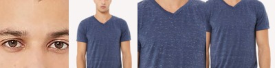 - Contrast color raglan sleeves, collar, "V", and waistband