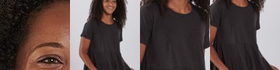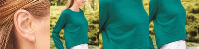- Triple-needle coverstitched raglan sleeves, cuffs, side inserts and bottom band