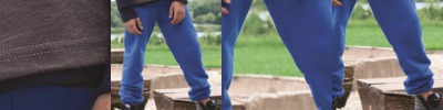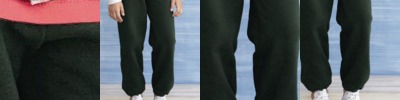Heavyweight 100% polyester matte brushed tricot; Woven label; Covered elastic waistband with inside drawcord; Side seam pockets; Tapered fit; Back yoke; Zipper on outside lower leg;