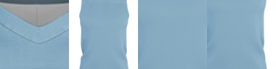 - Hemmed sleeve ends and scoop shirt tail bottom