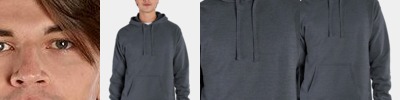 16 oz. ; 100% high quality, heavyweight pre-shrunk cotton; Oversized hooded sweatshirt; Spandex in cuff and band with front muff pocket; Crossover neckline, no drawstrings;