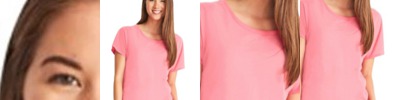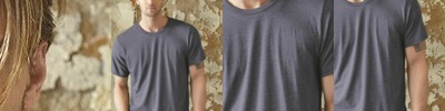 3.8 oz., 50% polyester/38% cotton/12% rayon tri-blend knit; Fits loose to body; Tear away label; Scoop neck; Dropped shoulder sleeves for mobility and comfort; Contoured bottom; Ladies' fit;