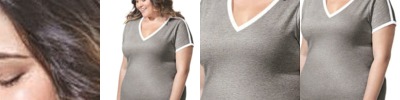 - Double-needle coverstitching on front neck