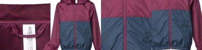 - Contrast color hood lining and drawcord